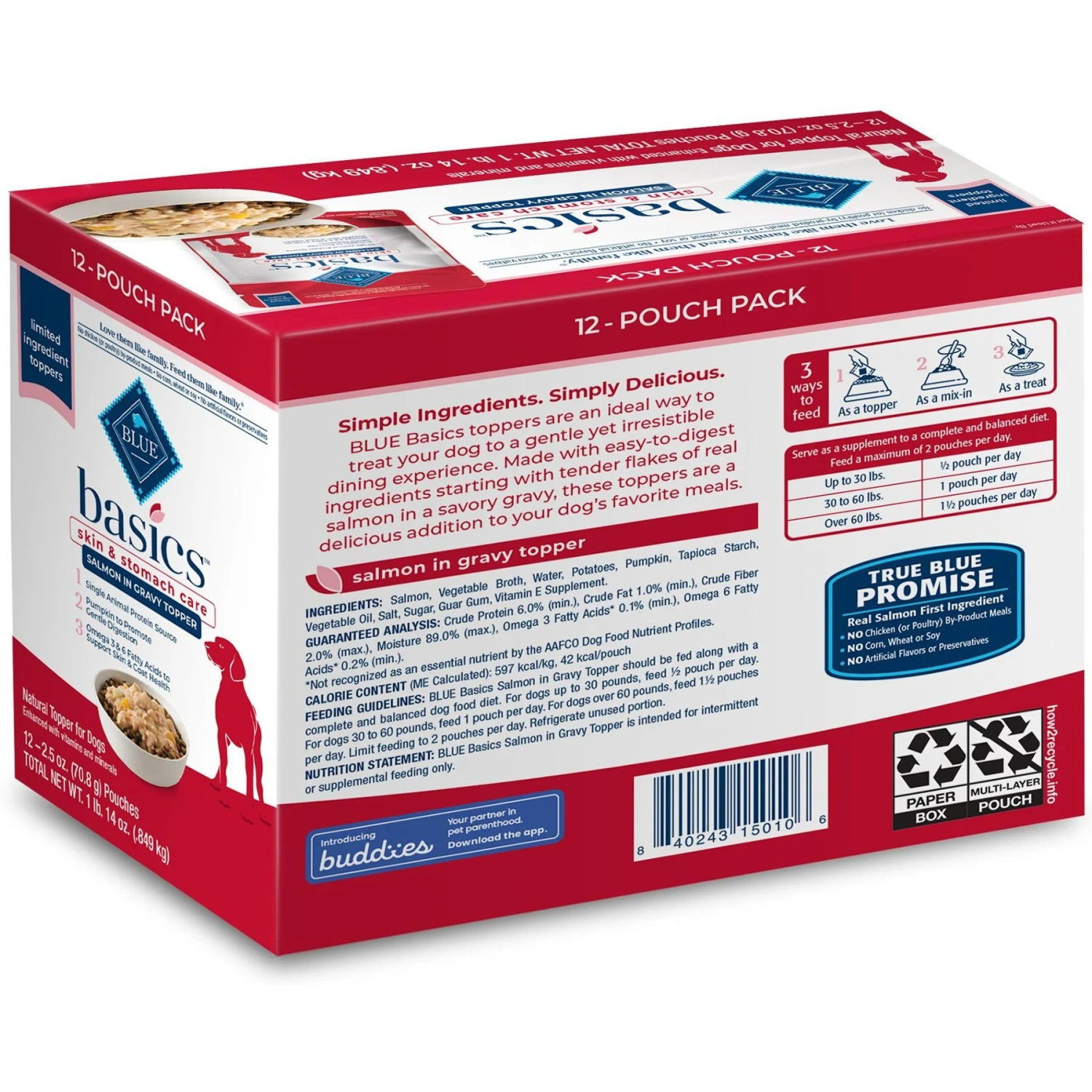 Give your pet pooch a paw-some dining experience with Blue Buffalo Basics LID Grain-Free Salmon Adult Wet Dog Food! It’s made with limited ingredients from a single animal protein source—real salmon—in a tender, flaky texture your furry friend is sure to love. Created with a savory gravy and pumpkin to help promote gentle digestion, this delicious food also helps promote your fur-iend’s healthy skin and immune system. It makes a paw-some addition to your pet pal’s favorite meal, and you can easily mix it into his favorite dry food or feed it to him as a savory treat in between mealtimes. You’ll love that it’s made with the finest natural ingredients, enhanced with vitamins and minerals, contains no chicken or poultry by-product meals, no corn, wheat or soy and no artificial flavors or preservatives. Bone a-paw-tite!