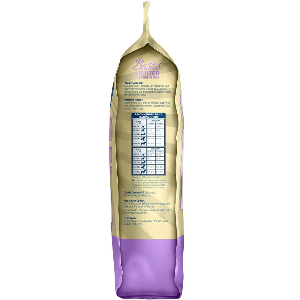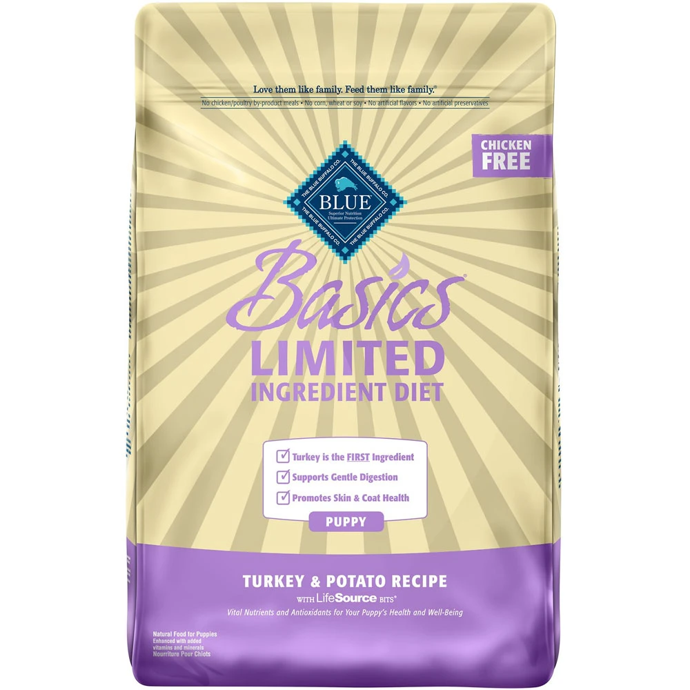 Blue Buffalo’s Basics Limited Ingredient Diet Turkey & Potato Recipe is a delicious, limited-ingredient diet made with fewer ingredients for puppies with food sensitivities. This recipe contains DHA to support your little one’s growth and development and features a single animal protein source with real turkey first, along with pumpkin and easily digested carbohydrates like potatoes and peas. It’s also crafted with BLUE’s exclusive LifeSource Bits a combination of selected antioxidants, minerals and vitamins picked by veterinarians and animal nutritionists to support your pup’s overall health and wellness. Now your paw-tner really has something to wag his tail about!