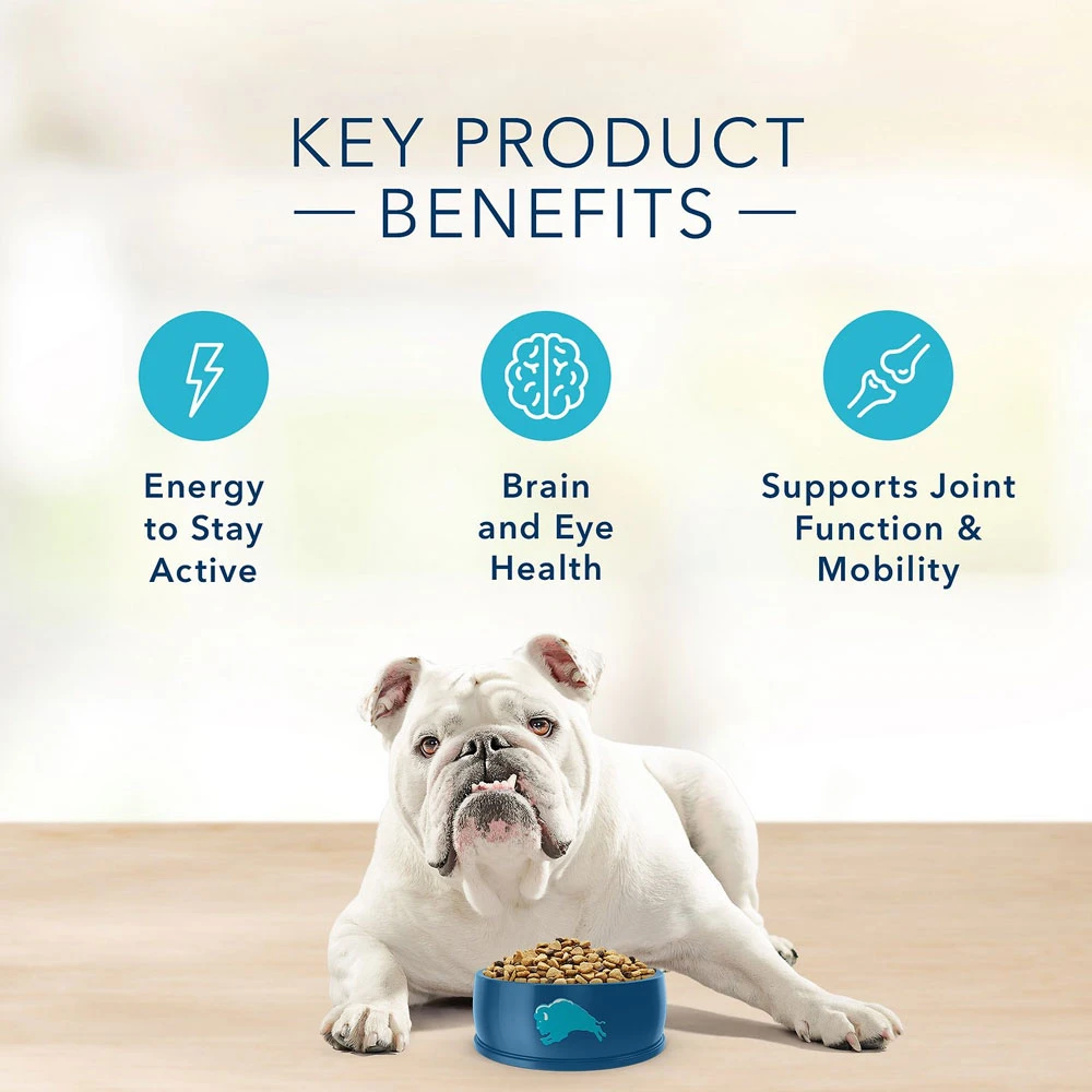 - Limited-ingredient senior dog food with essential proteins and carbohydrates to help meet your dog’s energy requirements.