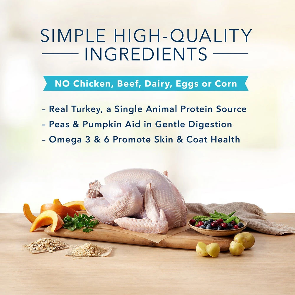 - Starts with real turkey, followed by other high-quality ingredients like potatoes, peas and pumpkin to support healthy digestion.