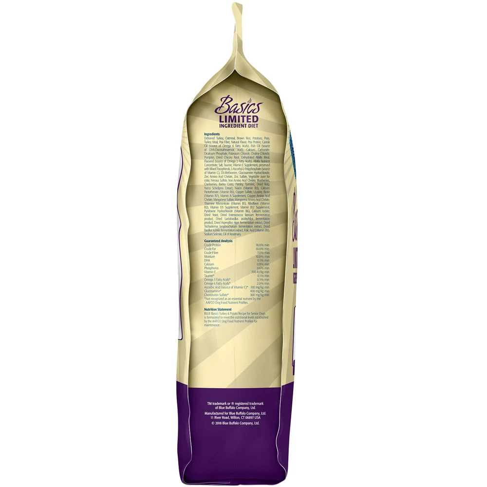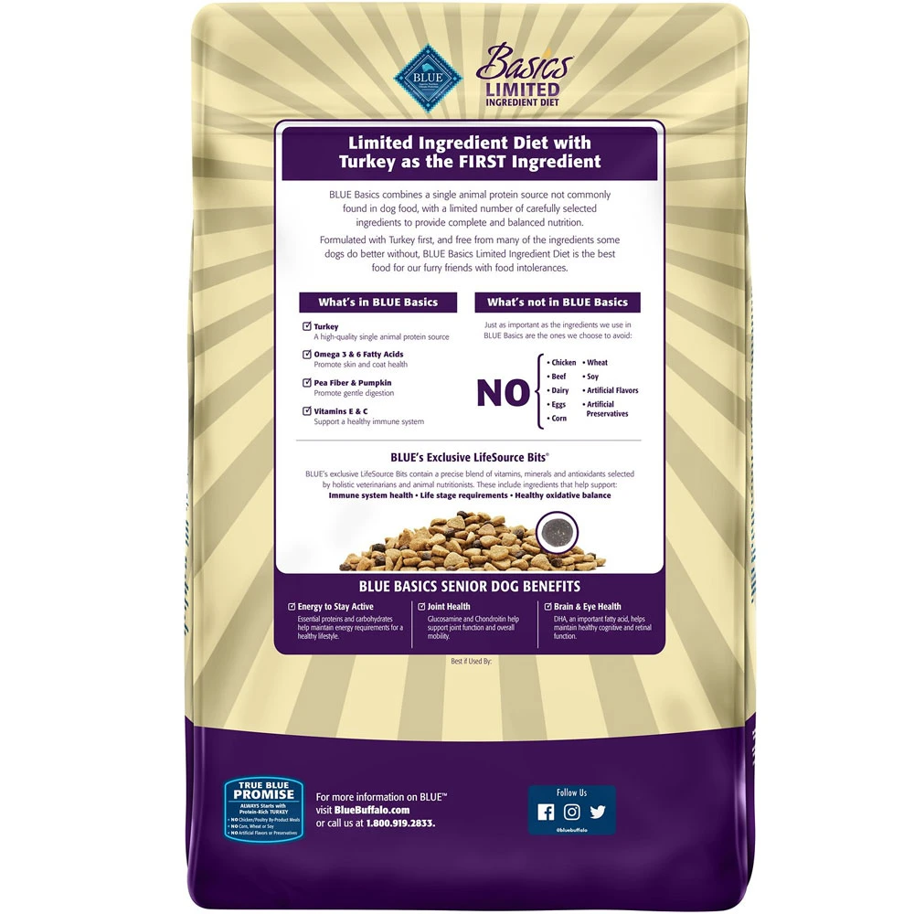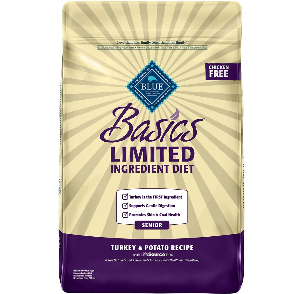 Blue Buffalo’s Basics Limited Ingredient Diet, Natural Senior Dry Dog Food is a delicious, limited-ingredient diet made with fewer ingredients for senior sidekicks with food sensitivities. Taurine helps support heart health, while chondroitin and glucosamine support your BFF’s joint health and mobility. This recipe starts with real turkey and includes pumpkin and easily digested carbohydrates like potatoes and peas. It’s also crafted with BLUE’s exclusive LifeSource Bits a combination of selected antioxidants, minerals and vitamins picked by veterinarians and animal nutritionists to support your dog’s overall health and wellness. Now your paw-tner really has something to wag his tail about!