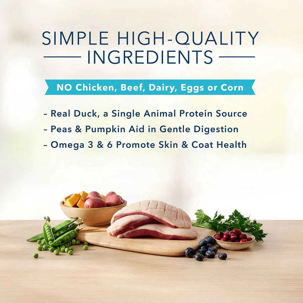 - Recipe starts with real duck, followed by other high-quality ingredients like potatoes, peas and pumpkin to support healthy digestion, plus gluten-free grains for sensitive tummies.