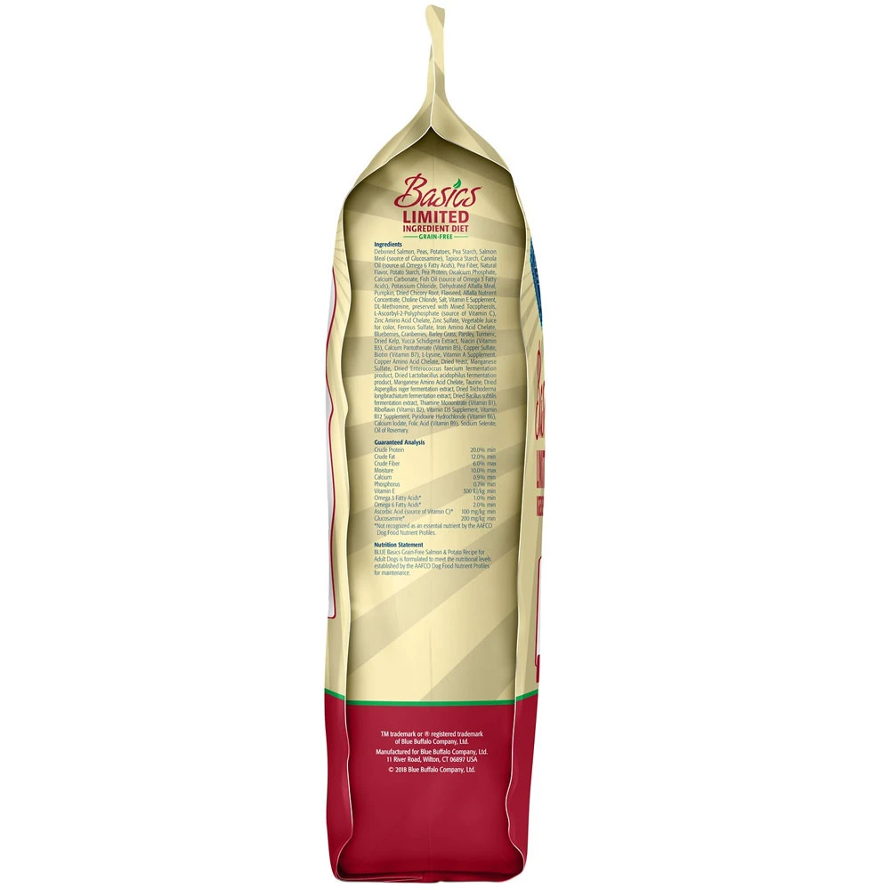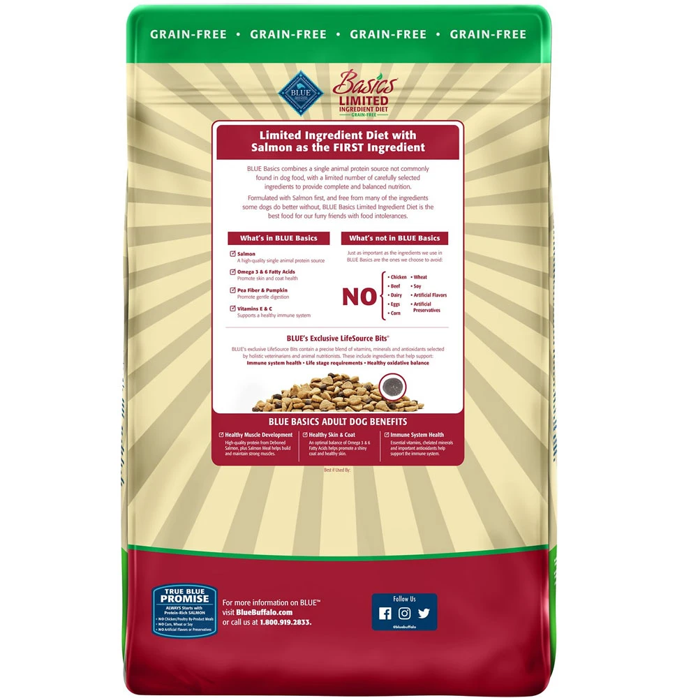 Blue Buffalo’s Basics Limited Ingredient Grain-Free Formula is a delicious, limited-ingredient diet made with fewer ingredients for adult canine companions with food sensitivities. This recipe contains a single animal protein source with real salmon first and includes pumpkin and easily digested carbohydrates like potatoes and peas. It’s also crafted with BLUE’s exclusive LifeSource Bits a combination of selected antioxidants, minerals and vitamins picked by veterinarians and animal nutritionists to support your dog’s overall health and wellness. Now your paw-tner really has something to wag his tail about!