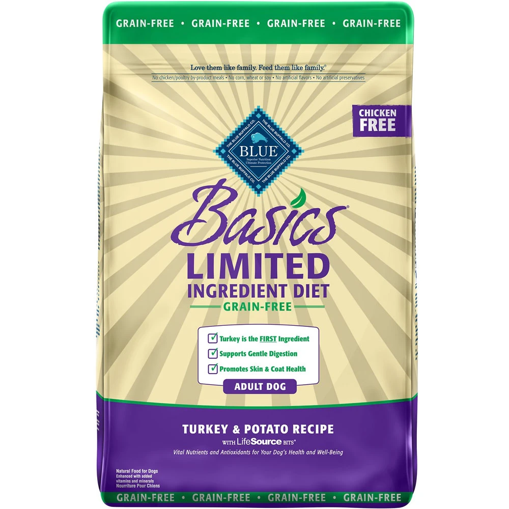 Blue Buffalo’s Basics Limited Ingredient Diet Grain-Free Formula is a delicious, limited-ingredient diet made with fewer ingredients for adult canine companions with food sensitivities. This recipe contains a single animal protein source with real turkey first and includes pumpkin and easily digested carbohydrates like potatoes and peas. It’s also crafted with BLUE’s exclusive LifeSource Bits a combination of selected antioxidants, minerals and vitamins picked by veterinarians and animal nutritionists to support your dog’s overall health and wellness. Now your paw-tner really has something to wag his tail about!