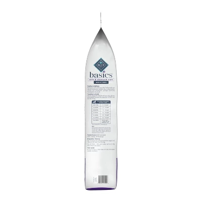 - LIMITED INGREDIENT DOG FOOD: BLUE Basics is a limited ingredient grain free dog food that doesn’t contain any chicken, beef, corn, wheat, soy, dairy or eggs making it a good option for dogs with food sensitivities