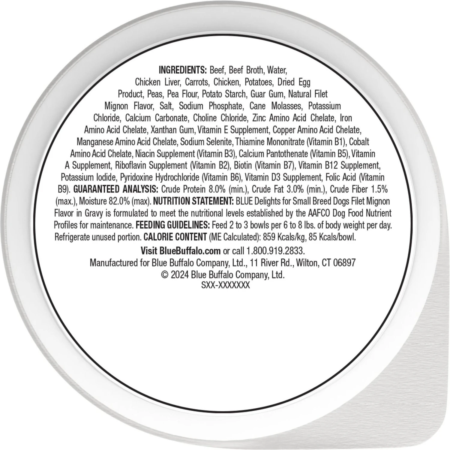 Feed your little furry friend a meal that’s both nutritious and delicious! Blue Buffalo Divine Delights Filet Mignon Flavor Hearty Gravy Dog Food is crafted to meet the nutritional requirements of small breed dogs. Featuring high-quality, natural ingredients like real beef first, along with potatoes, carrots and peas in a delectable gravy, each wag-worthy tray is packed with the flavor he craves. And with zero grains and added vitamins and minerals to support your hound’s overall health, how can you go wrong? You can’t!