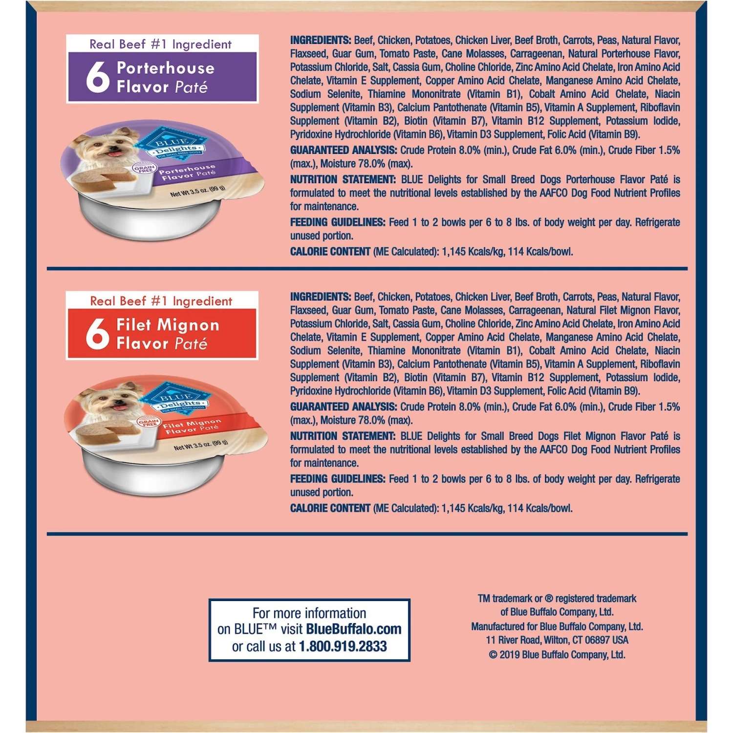 - Every pack comes with 6 cups of Porterhouse Flavor Pate and 6 cups of Filet Mignon Flavor Pate. Both recipes are crafted with real beef first to help fuel your little furry friend’s muscles and support his higher energy needs.