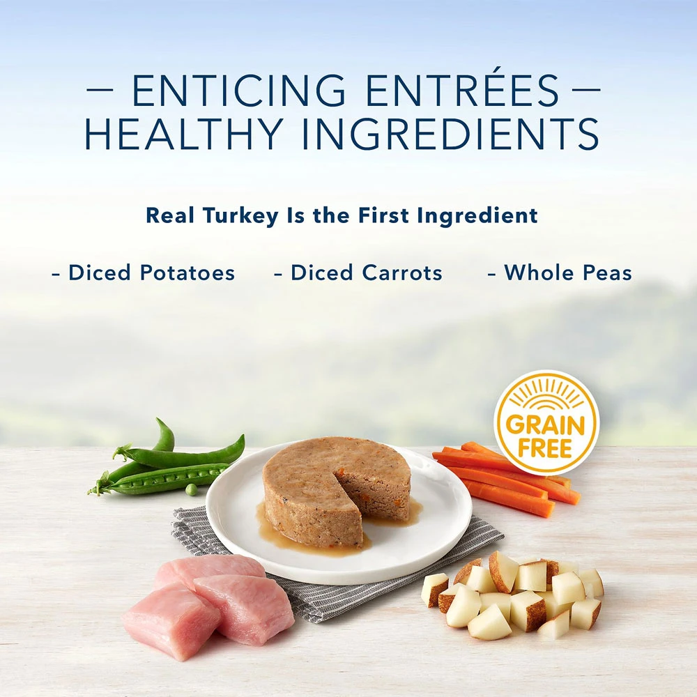 - Every pack comes with 12 cups of grain-free Roasted Turkey Flavor Pate with real turkey first to help fuel your little furry friend’s muscles and support his higher energy needs.