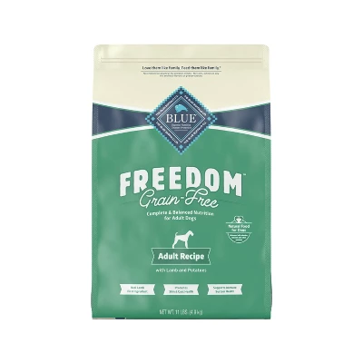 - GRAIN FREE DOG FOOD: BLUE Freedom grain free adult dog food is specifically formulated to meet the nutritional requirements of adult dogs to help provide energy for an active life. Plus, it contains omega 3 & 6 fatty acids to support skin and coat health.