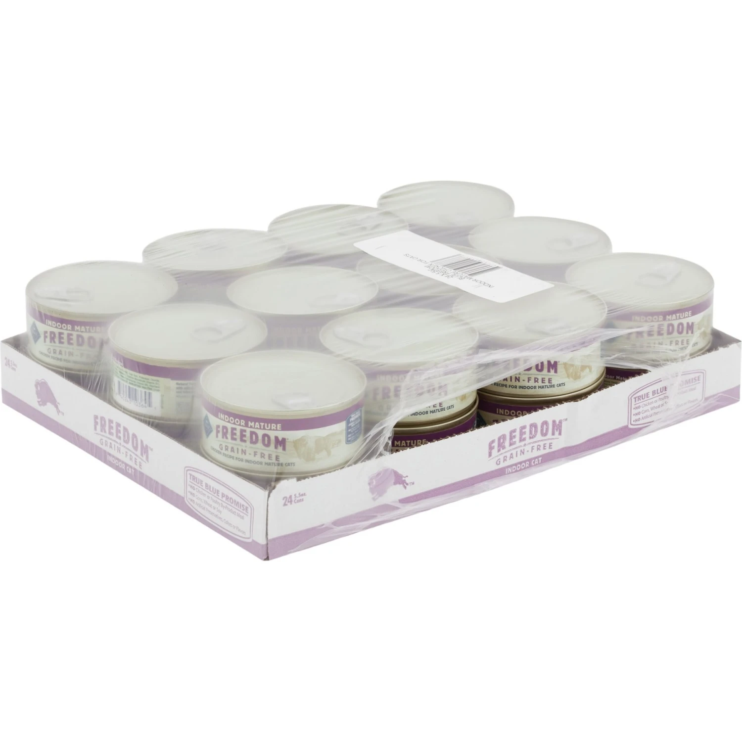 Help keep your older amigo feeling happy and healthy with Blue Buffalo Freedom Grain Free Natural Mature Pate Wet Cat Food. Purr-fect for your senior sidekick, this irresistibly tasty wet food is made using only the finest naturally grain and gluten-free ingredients. It starts with high-protein chicken, packed with healthy fruits and veggies, then enhanced with vitamins and minerals. Formulated to support the nutritional needs of mature cats, this delicious pate-style food is made exclusively with wholesome ingredients that do not contain any grain, gluten, by-product meals, corn, wheat, soy, artificial flavors or preservatives.