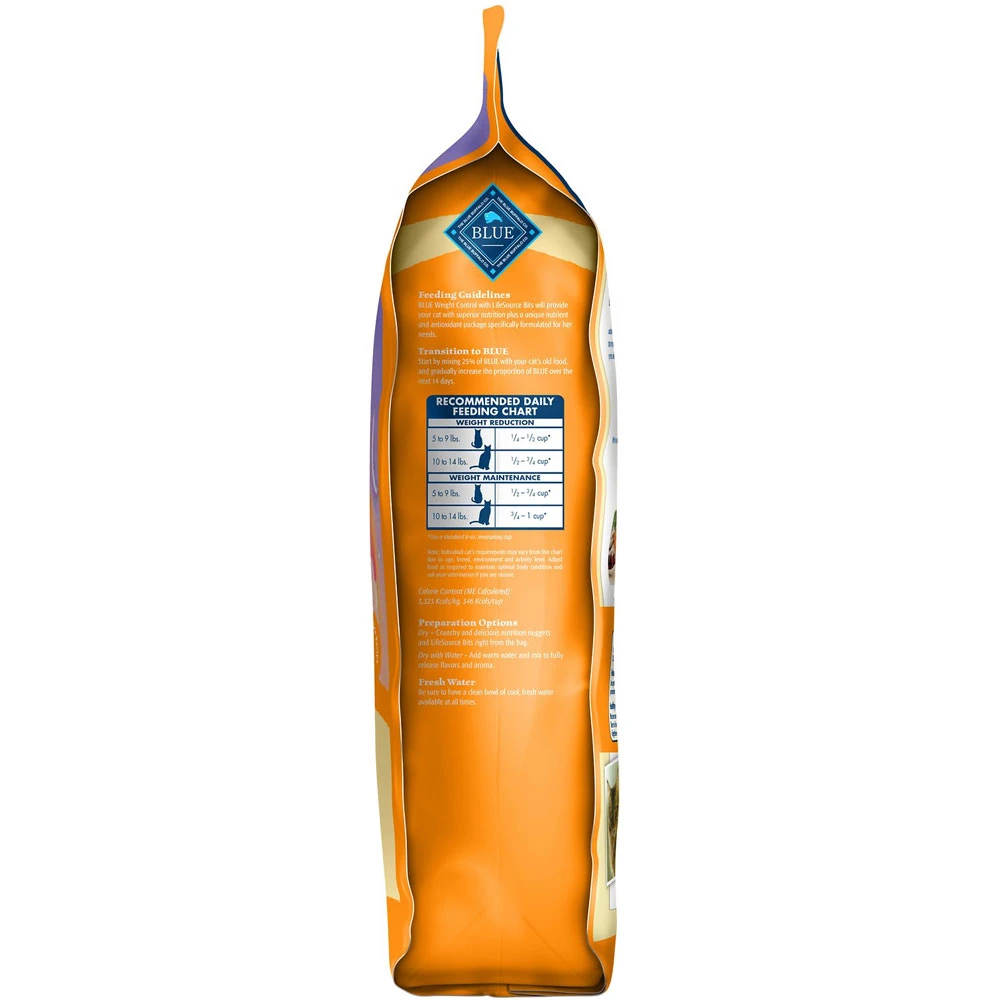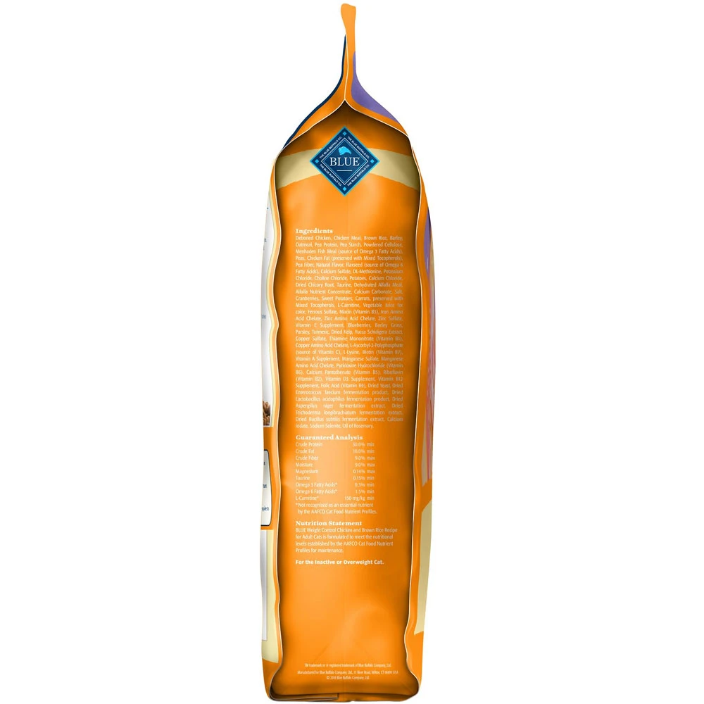Blue Buffalo Healthy Aging Weight Control Chicken & Brown Rice Recipe Adult Dry Cat Food is made from some of the finest natural ingredients and enhanced with vitamins and minerals. This delectable recipe is crafted with an optimal blend of calories and protein to help your feline achieve and maintain an ideal body weight. It also includes BLUEs exclusive LifeSource Bits a combination of selected antioxidants, minerals and vitamins picked by veterinarians and animal nutritionists to support your cats overall health and wellness. Now your paw-tner really has something to purr about!
