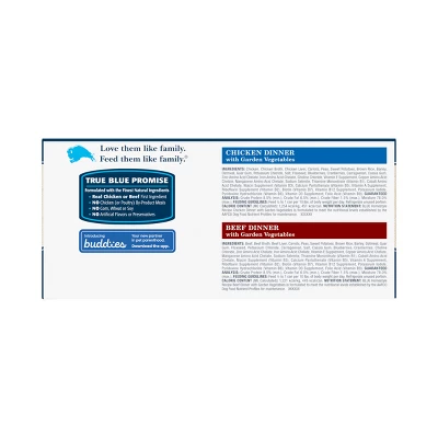 - WHOLESOME INGREDIENTS: BLUE wet dog food contains NO chicken (or poultry) by-product meals, NO corn, wheat (a common thickening agent used by other brands) or soy, and NO artificial flavors or preservatives