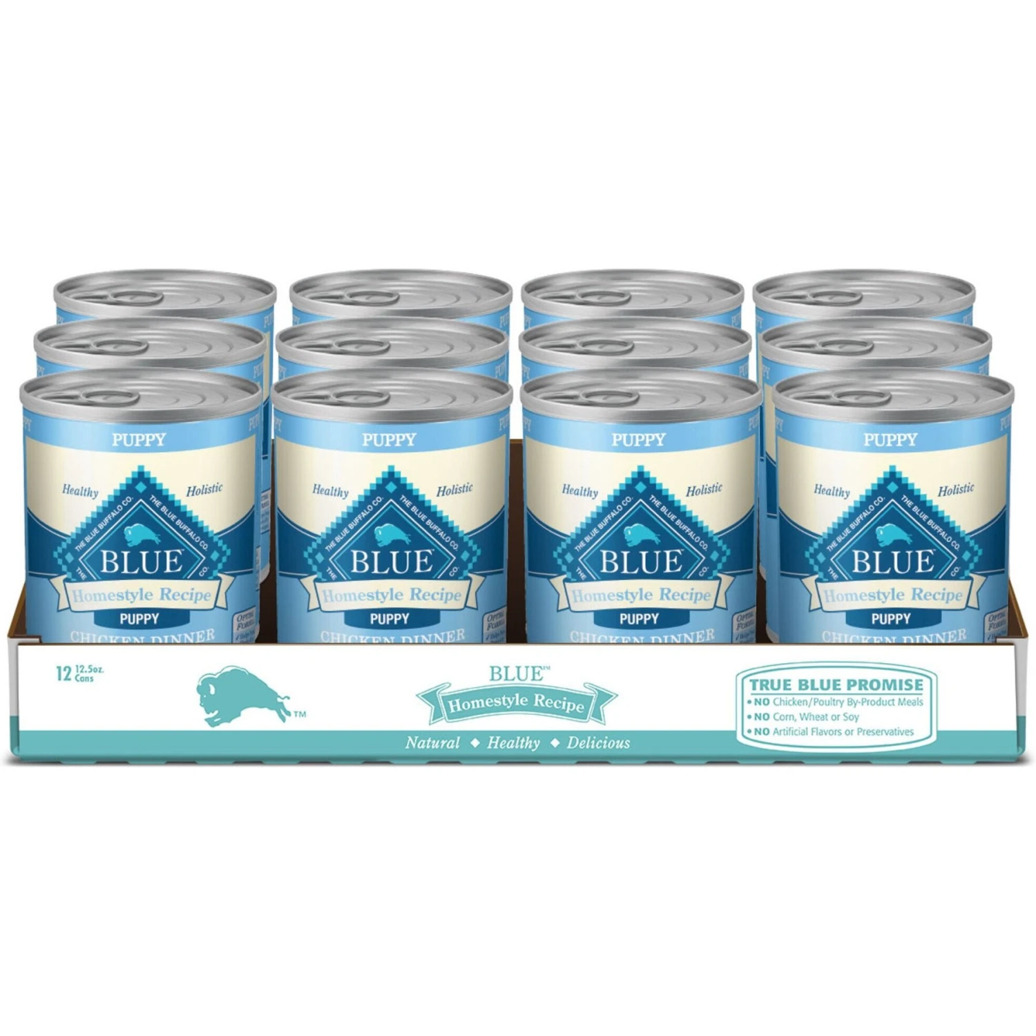 Power up your puppy pal with Blue Buffalo Homestyle Recipe Natural Puppy Wet Dog Food. Paw-fect for your growing guy, this irresistibly tasty wet food is made using only the finest natural ingredients. It starts with high-quality protein from tender pieces of chicken, packed with garden fruits and veggies, then enhanced with vitamins and minerals. Formulated with DHA to support brain, eye and cognitive development, this pate-style puppy food is made with wholesome ingredients that do not contain any by-product meals, corn, wheat, soy, artificial flavors or preservatives.
