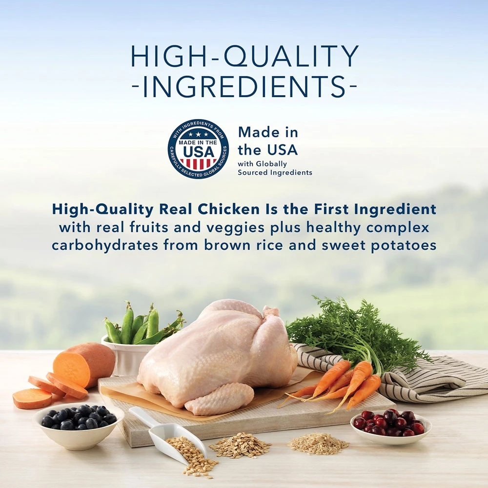 Blue Buffalo Life Protection Formula was created for the holistic health and well-being of adult dogs. All formulas start with real meat, whole grains, garden veggies and fruit, plus added LifeSource Bits, a precise blend of nutrients that have been enhanced with a Super 7 package of antioxidant-rich ingredients. This Adult Chicken & Brown Rice Recipe features delicious, protein-rich deboned chicken and other natural ingredients for a healthy meal your dog will love.
