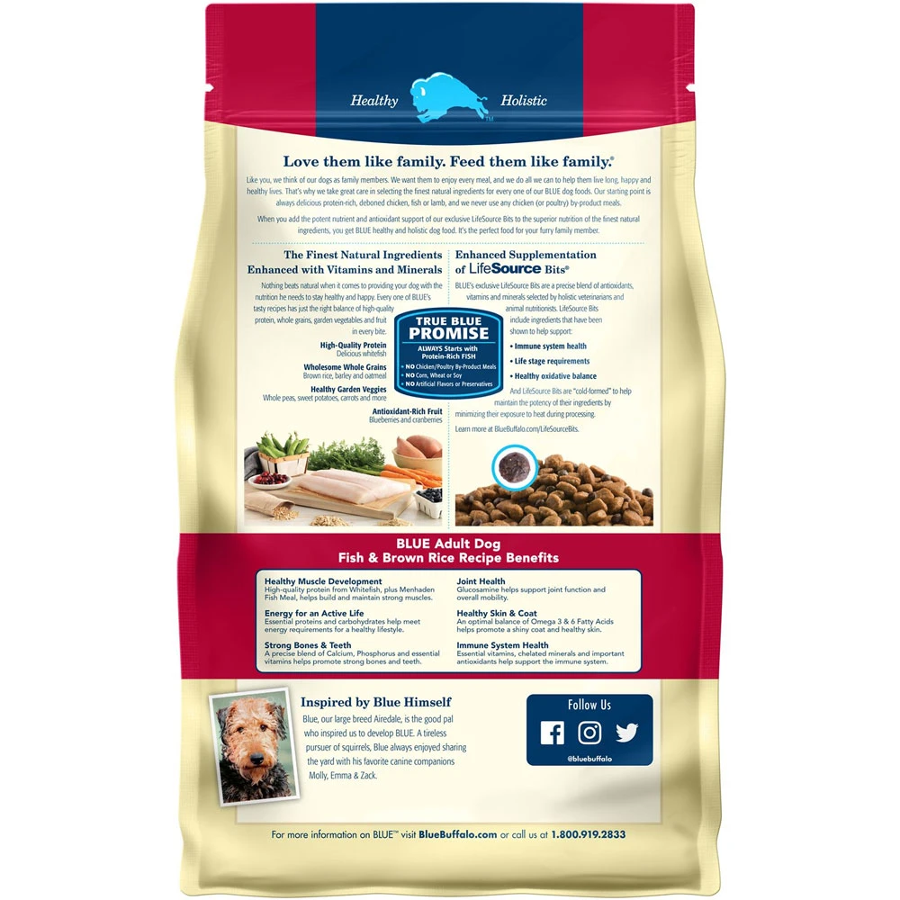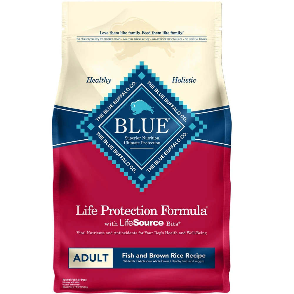 Blue Buffalo Life Protection Formula was created for the health and well-being of dogs. All formulas start with real meat, whole grains, garden veggies and fruit, plus added LifeSource Bits, a precise blend of nutrients that have been enhanced with a Super 7 package of antioxidant-rich ingredients. This Adult Fish & Brown Rice Recipe features delicious, protein-rich deboned whitefish and other natural ingredients for a healthy meal your dog will love.