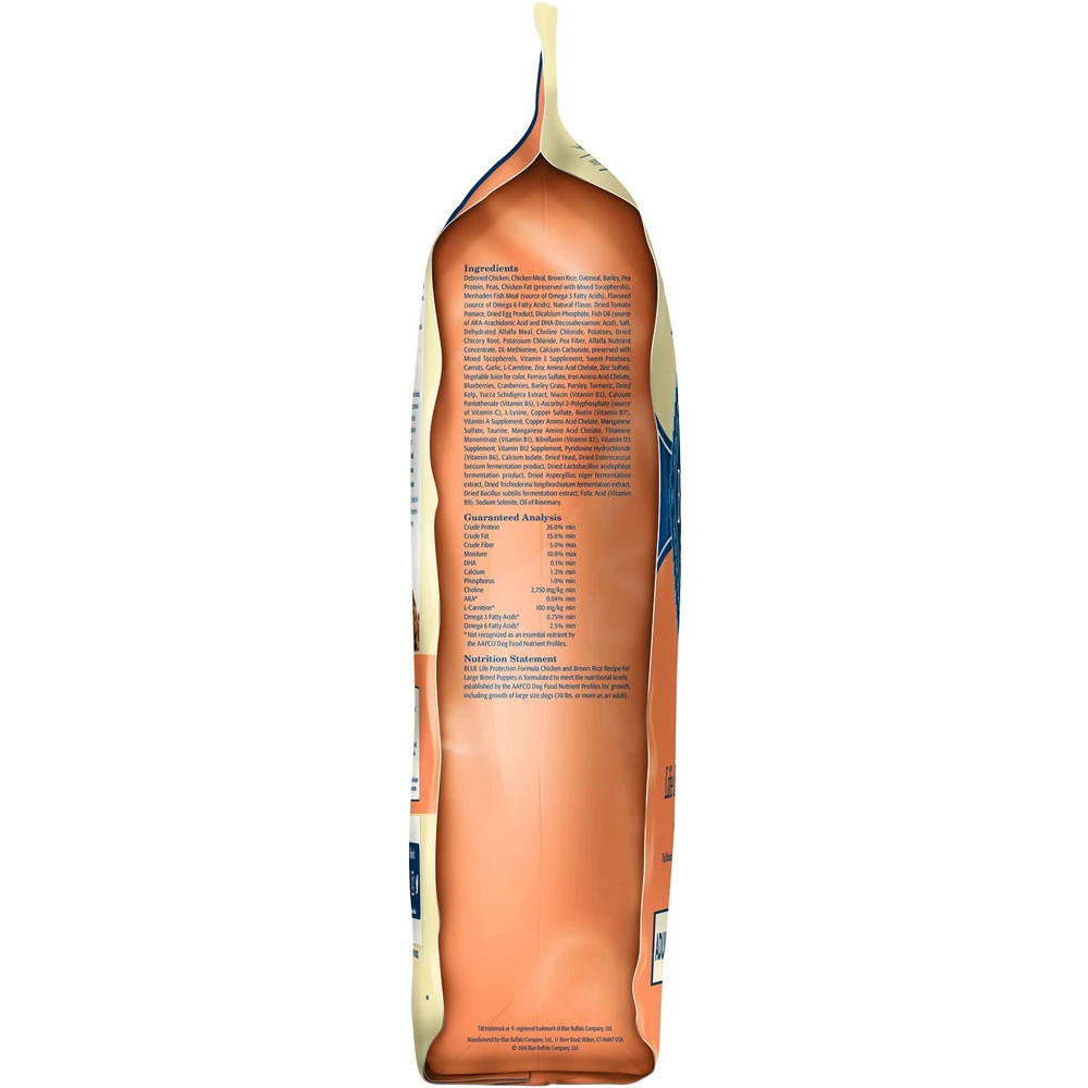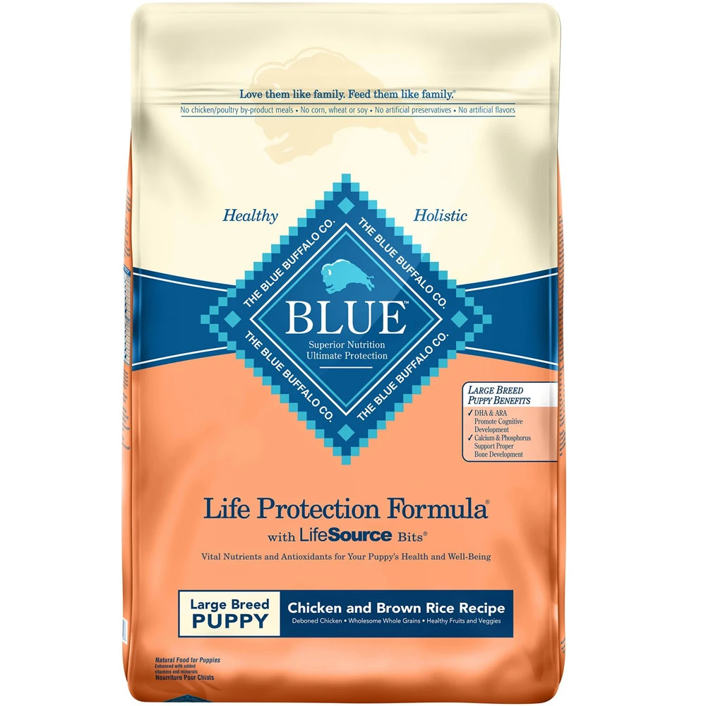 Blue Buffalo Life Protection Formula was created for the health and well-being of dogs. All formulas start with real meat, whole grains, garden veggies and fruit, plus added LifeSource Bits, a precise blend of nutrients that have been enhanced with a Super 7 package of antioxidant-rich ingredients. This Large Breed Puppy Chicken & Brown Rice Recipe features delicious, protein-rich deboned chicken. And because puppyhood is such an important stage, it features ingredients that support healthy growth and development.