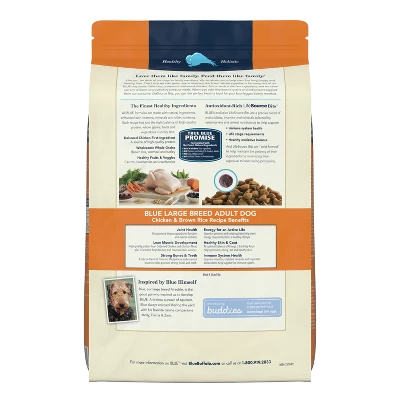 - Contains one (1) 15 lb. Bag of BLUE Life Protection Formula Large Breed Adult Dry Dog Food, Chicken and Brown Rice
