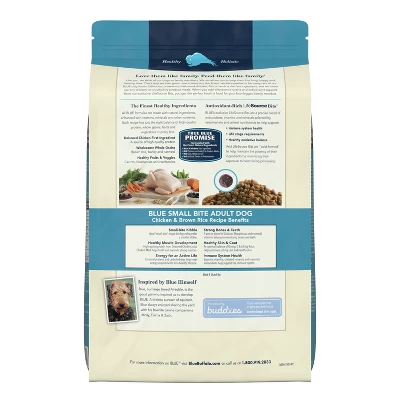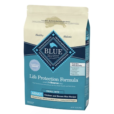 - Contains one (1) 15 lb. Bag of BLUE Life Protection Formula Adult Small Bite Dry Dog Food, Chicken and Brown Rice