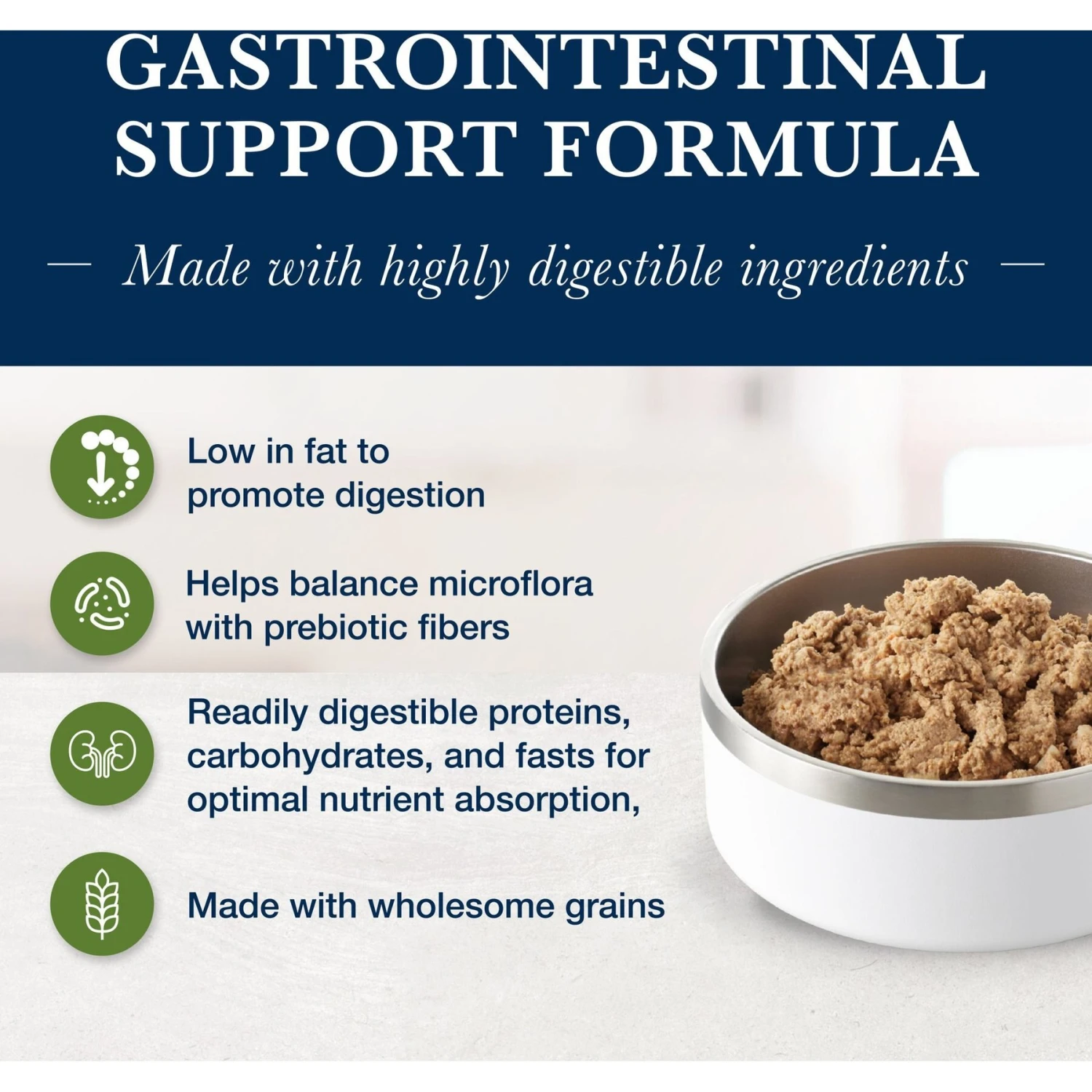Give your furry friend a meal that is highly digestible with Blue Buffalo Natural Veterinary Diet GI Gastrointestinal Support Low Fat Canned Dog Food. Formulated with readily digestible proteins, carbohydrates and fats for optimal nutrient absorption, this veterinary diet helps those pups who have difficulty digesting fat. It boosts the overall gastrointestinal health of your companion with prebiotic fibers to help balance and support healthy microflora. This natural diet also provides your paw-tner with both beneficial nutrition and a taste he will love. Consider this Blue Buffalo Natural Veterinary Diet a complete and balanced formula with a maintenance energy level for adult dogs.