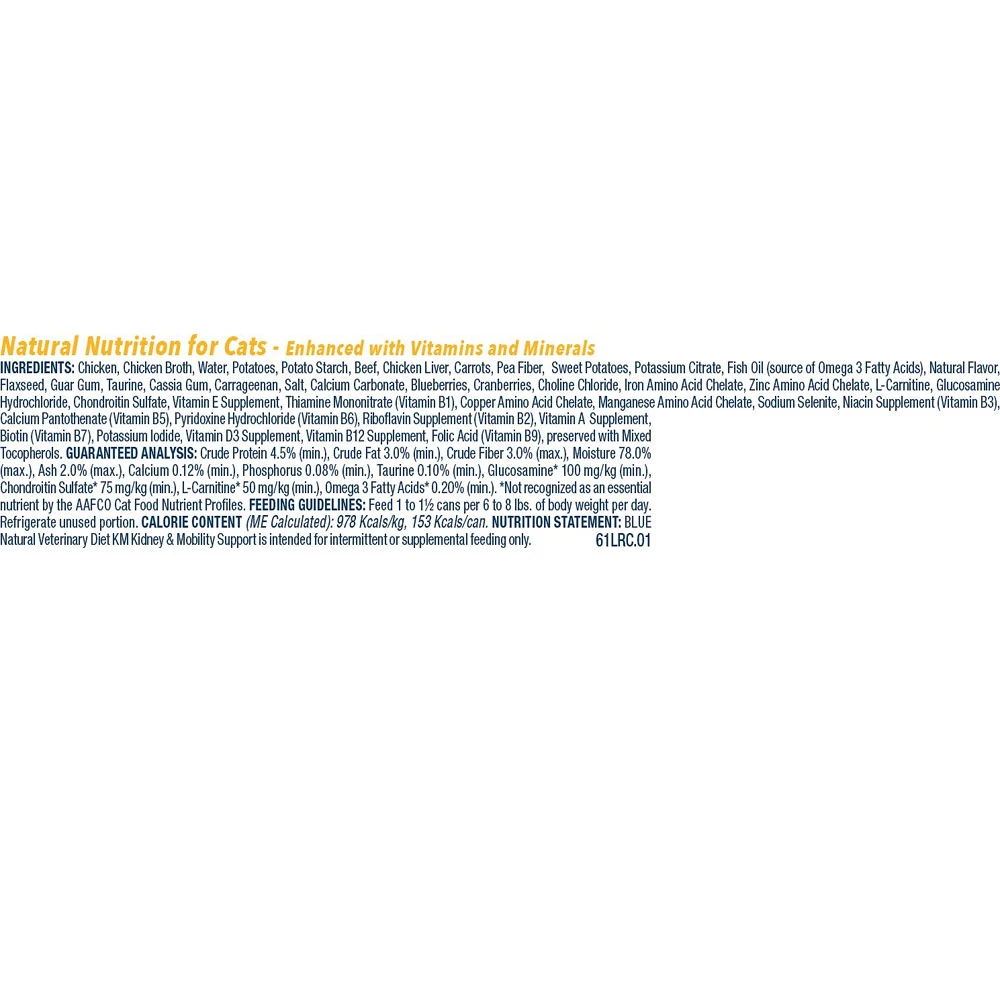 BLUE NVD KM Kidney + Mobility Support for Cats is formulated to nutritionally manage kidney disease, as well as joint disease, with added joint healthpromoting nutrients, including EPA, DHA, glucosamine and chondroitin sulfate.