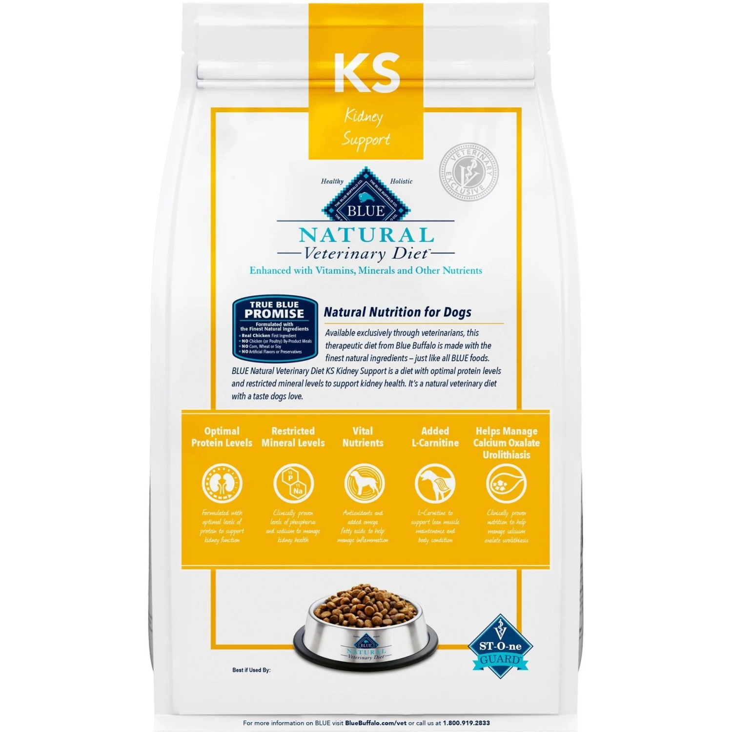 Give your barking bestie the nutrition she needs with Blue Buffalo Natural Veterinarian Diet KS Kidney Support Dry Dog Food! This high-protein dry food is made with real, high-quality chicken. It also features additional vitamins, minerals, and controlled levels of phosphorus and sodium to help maintain kidney health. It’s also free from chicken and poultry by-product meal, corn, wheat, soy, artificial flavors, and preservatives. Even the pickiest pups will lap up the irresistible taste, and you can rest easy knowing you’re giving her a fur-esh, high-quality meal!