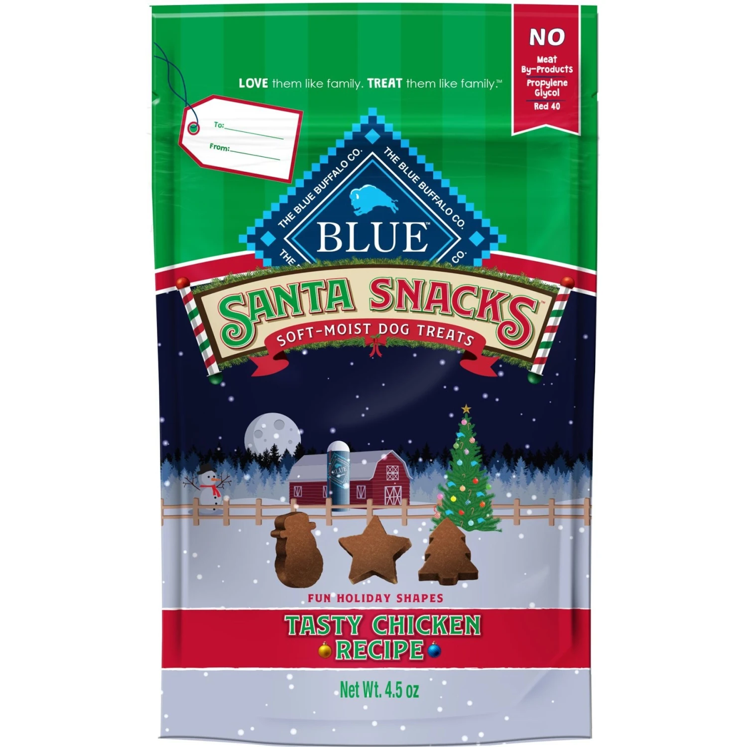 Make the holidays joyful and triumphant with these Blue Buffalo Santa Snacks Tasty Chicken Recipe Soft-Moist Dog Treats! These soft rewards come in fun holiday shapes and are made with some of the finest ingredients, including real chicken, oatmeal, brown rice and flaxseed. Santa Snacks make the paw-fect stocking stuffers for any festive furry friend. And you can feel good knowing that they are made without poultry by-product meals, corn, wheat, soy, or artificial flavors or preservatives. These seasonal goodies won’t last long, so grab a pack or two while you still can!