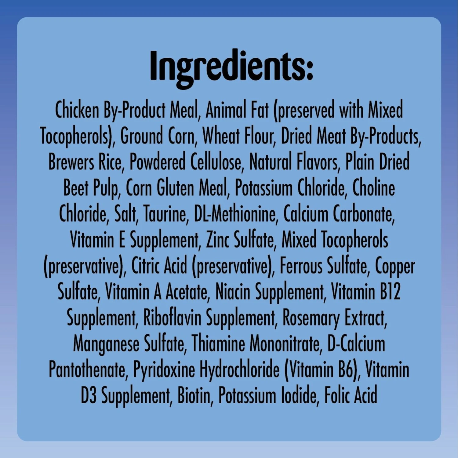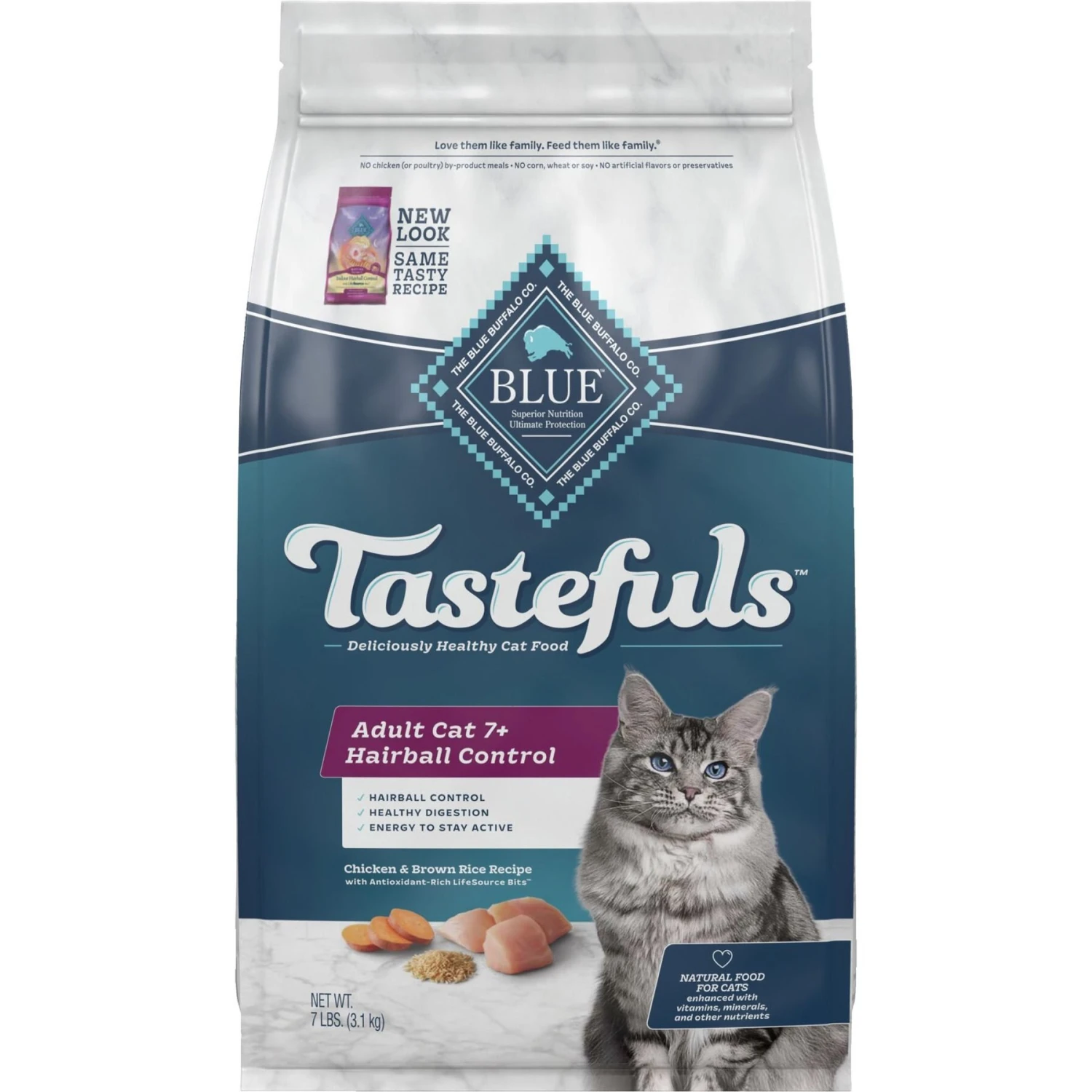 - Chicken flavored, adult dry cat food recipe designed to help control your senior sweetie’s hairballs.