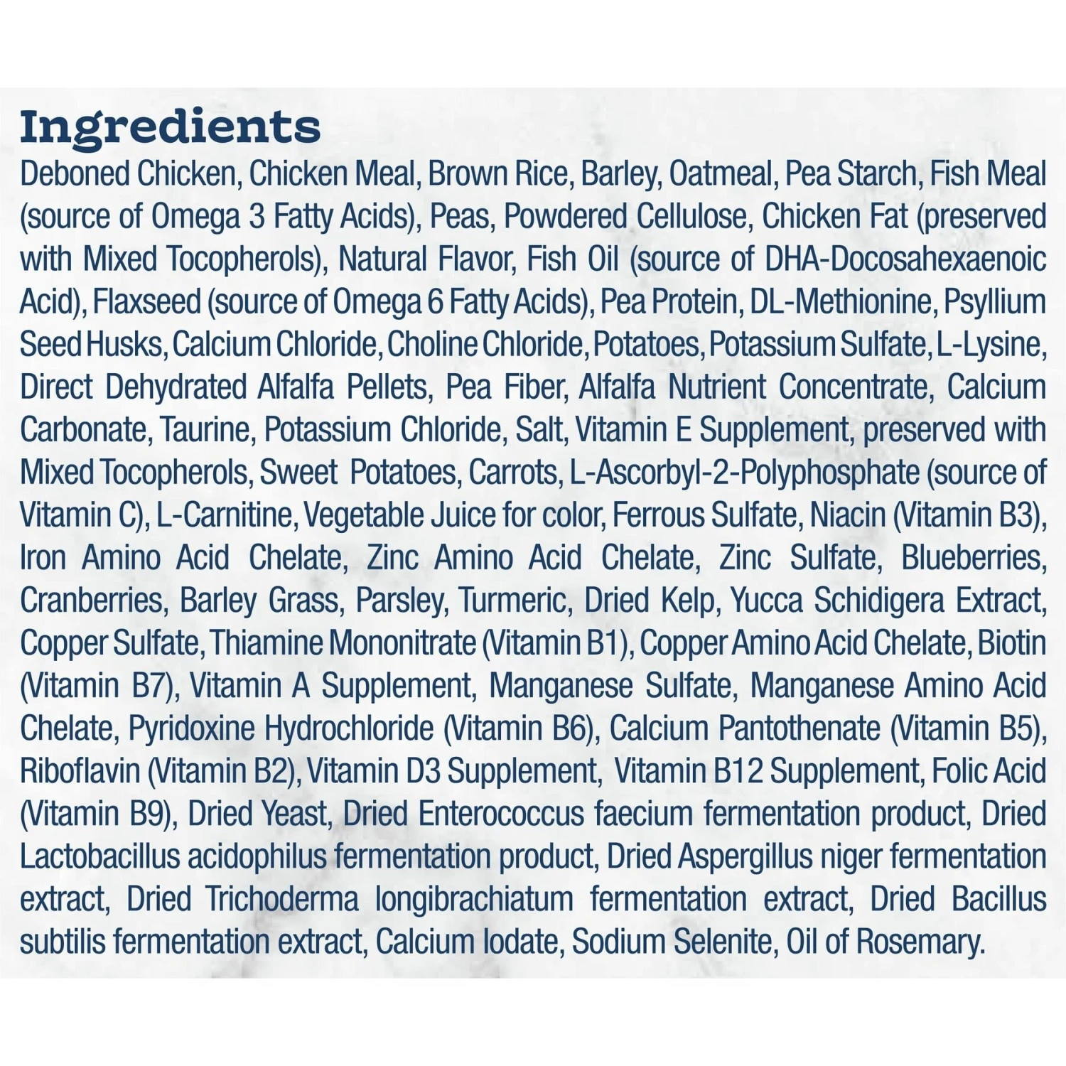 - Savory real chicken is the #1 ingredient and omega-3 and-6 fatty acids enhance skin and coat health.