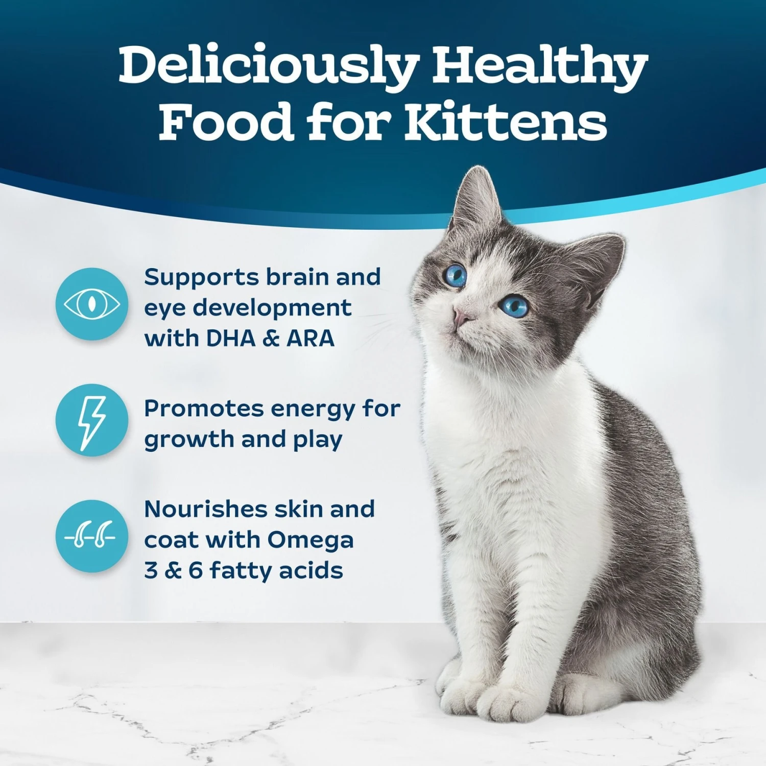 - Designed to support the needs of growing kittens with DHA, ARA and taurine for brain, eye and heart health.