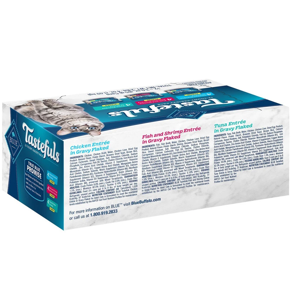 Blue Buffalo Tastefuls Tuna, Chicken, Fish & Shrimp Entrees Variety Pack Flaked Wet Cat Food, 3-oz, Case Of 24