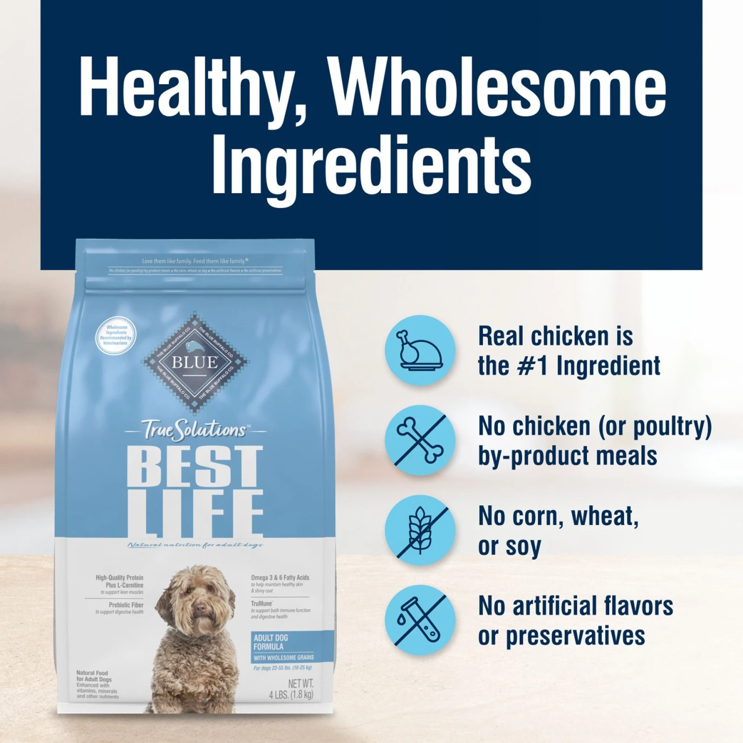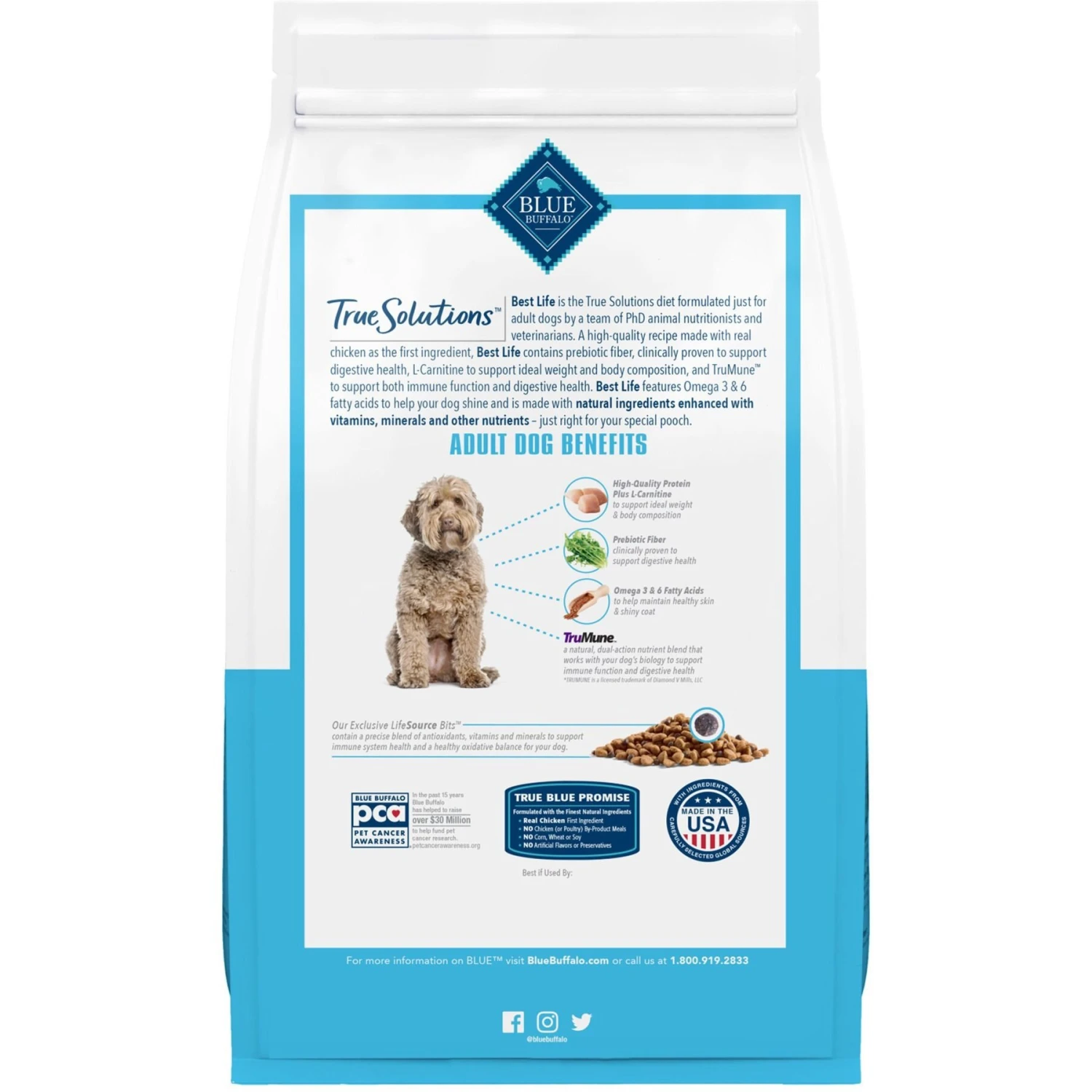Your dog will be salivating with joy for Blue Buffalo True Solutions Best Life Medium Breed Adult Dry Dog Food. Yummy, real chicken is the first, most important ingredient in this nourishing feast, supplemented with fruits, vegetables, and wholesome grains for a balanced diet. It’s even formulated with high-quality protein, L-Carnitine, and prebiotic fiber to support essential aspects of your best fur-iend’s health such as maintaining an ideal weight and digestive health. Make those meals into the tastiest time for your pooch!