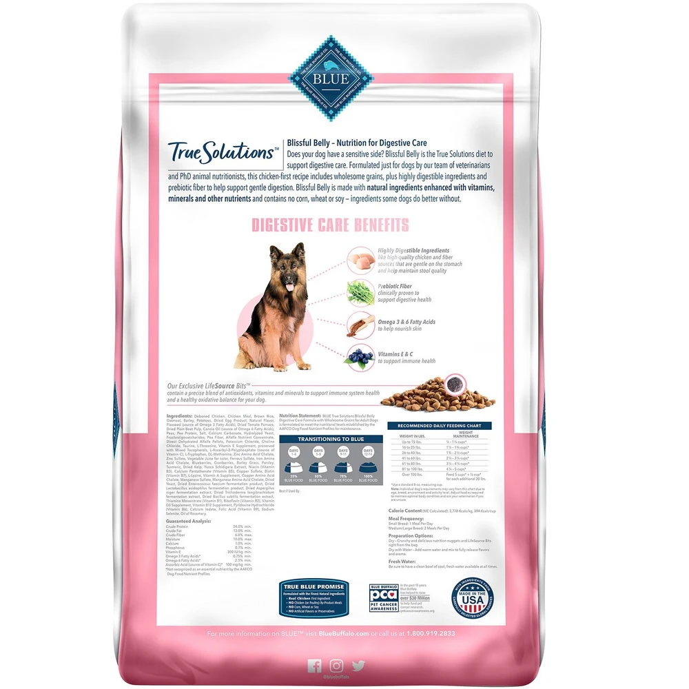 Blue Buffalo True Solutions Blissful Belly Natural Digestive Care! This scrumptious adult wet dog food is formulated by Blue Buffalo’s team of veterinarians and animal nutritionists. It’s crafted with real chicken for high quality protein, and features other natural ingredients, too! Packed with vitamins, minerals as well as other nutrients, this recipe is gentle on bellies and also contains prebiotic fiber to support healthy digestion.