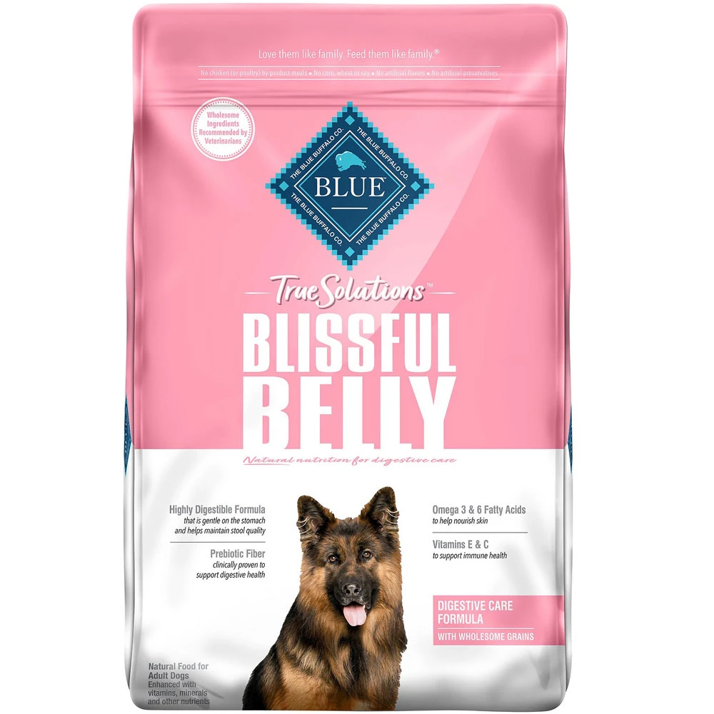 Blue Buffalo True Solutions Blissful Belly Natural Digestive Care! This scrumptious adult wet dog food is formulated by Blue Buffalo’s team of veterinarians and animal nutritionists. It’s crafted with real chicken for high quality protein, and features other natural ingredients, too! Packed with vitamins, minerals as well as other nutrients, this recipe is gentle on bellies and also contains prebiotic fiber to support healthy digestion.