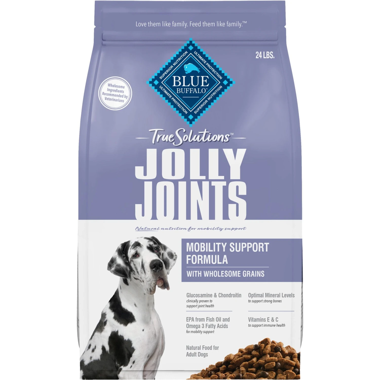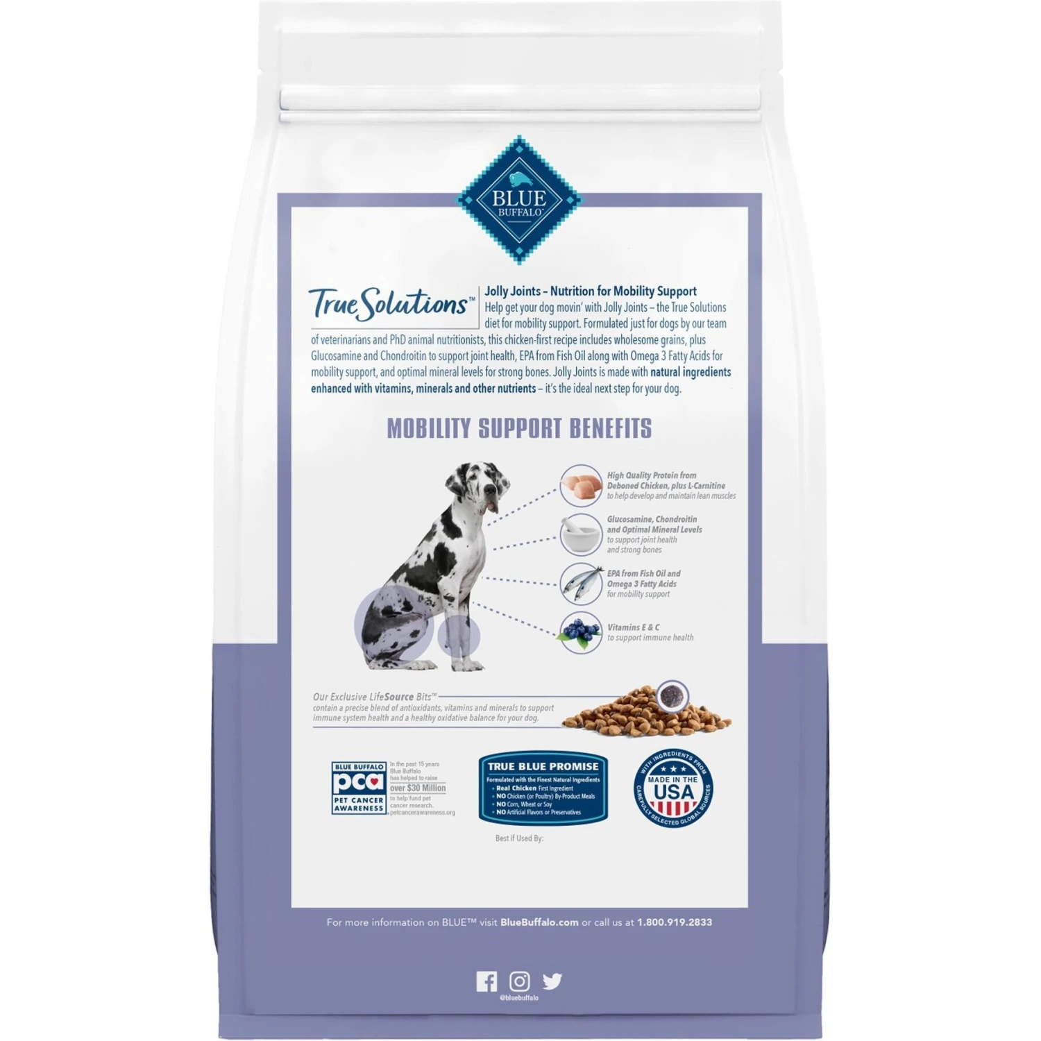 Help your hound get around with Blue Buffalo True Solutions Jolly Joints Natural Mobility Support! This scrumptious adult dry dog food is formulated by Blue Buffalo’s team of veterinarians and animal nutritionists. It’s crafted with real chicken first for the high-quality protein your dog deserves and features other natural ingredients, too! Packed with vitamins, minerals as well as other nutrients, this recipe is rich in glucosamine and chondroitin to help support your paw-tner’s hip and joint health. Plus, there’s fish oil to support her overall mobility!
