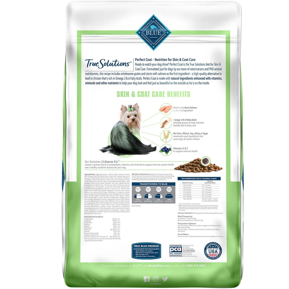 Blue Buffalo True Solutions Perfect Coat Natural Skin & Coat Care! This scrumptious adult wet dog food is formulated by Blue Buffalo’s team of veterinarians and animal nutritionists. It’s crafted with real whitefish first for the high-quality protein your dog deserves and features other natural ingredients, too! Packed with vitamins, minerals as well as other nutrients, this recipe is rich in omega fatty acids to support healthy skin and a lustrous coat. And you can feel good knowing it’s made without corn, wheat, soy, dairy or eggs!