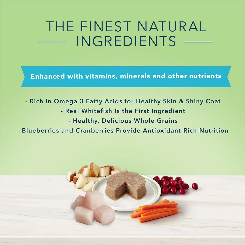 - Features with real whitefish as the very first ingredient, followed by fruits and veggies to naturally support sensitive skin.