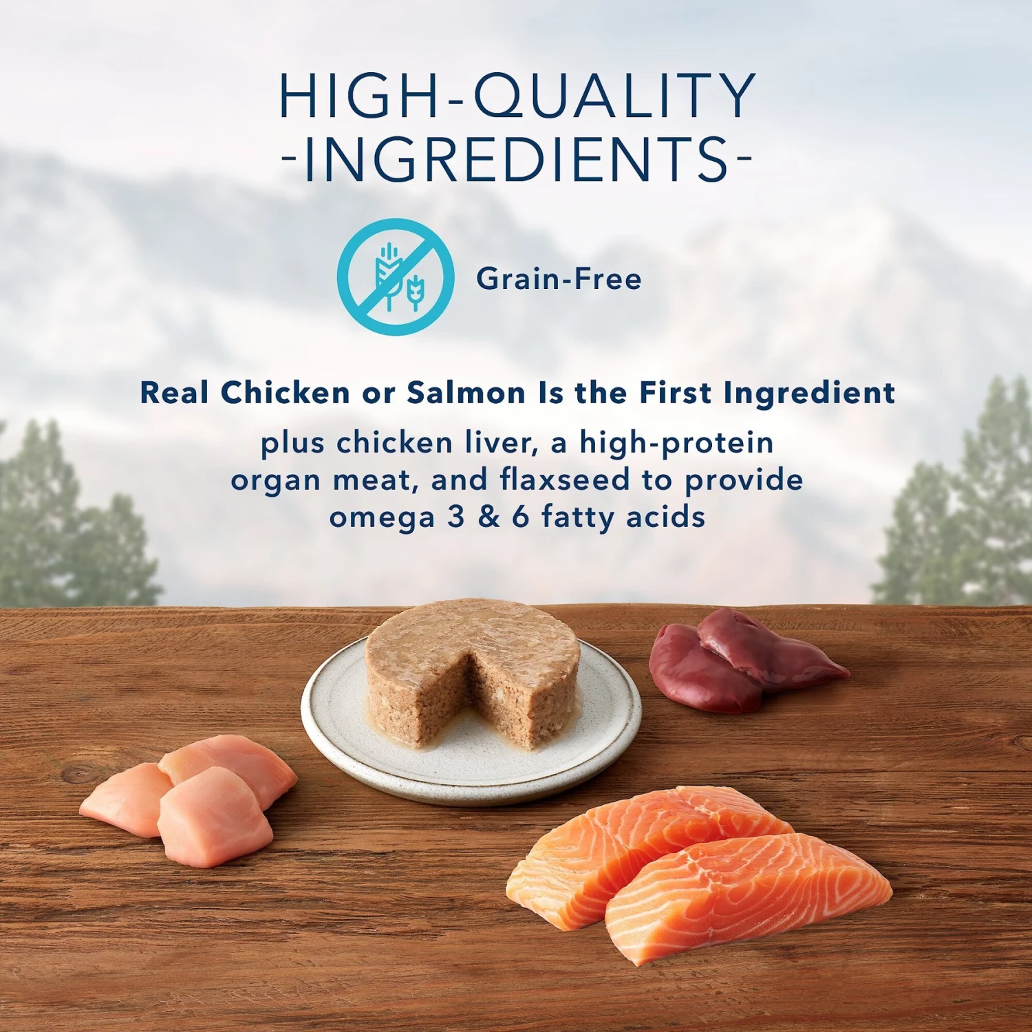 - Starts with real chicken or salmon to aid healthy muscle growth.