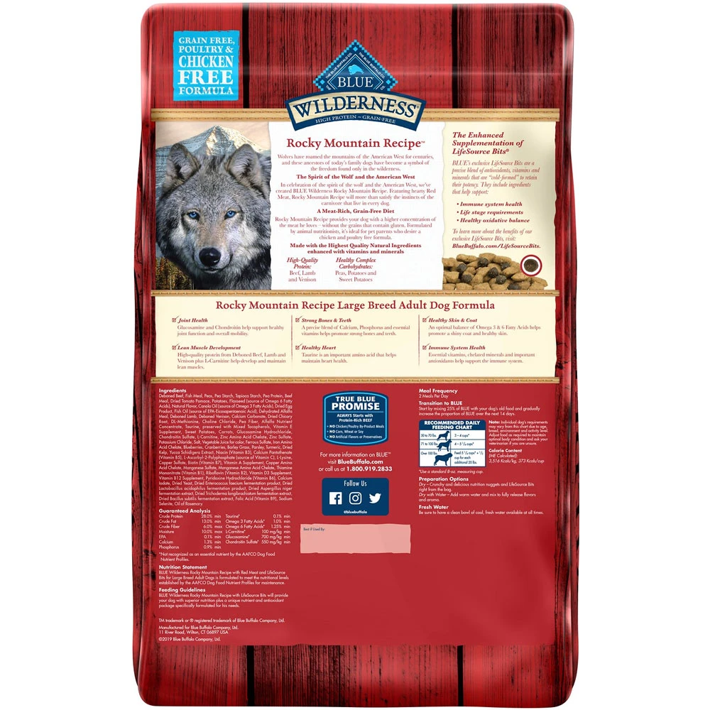 Blue Wilderness Rocky Mountain Recipe with Red Meat for Large Breeds was created to feed that same spirit of adventure in today’s dogs, with real red meat, real vegetables and real fruit. Added glucosamine and chondroitin support joint health, which is important for large breeds. Multiple sources of protein from beef, venison and lamb help your pal absorb the maximum amount of nutrition.