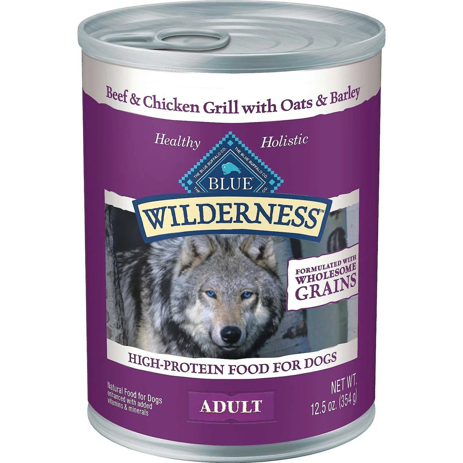 Your best pal is sure to know he’s been an extra-good boy at dinnertime! Each purchase comes with Blue Buffalo Wilderness Salmon & Chicken Grill with Oats & Barley Adult Wet Dog Food & Blue Buffalo Wilderness Beef & Chicken Grill with Oats & Barley Adult Wet Dog Food. Blue Buffalo Wilderness Salmon & Chicken Grill with Oats & Barley Adult Wet Dog Food features a savory mix of protein-rich salmon and chicken that satisfies your dog’s natural cravings for meat while supporting his energy needs with complex carbohydrates from wholesome grains. Plus, this dog food is crafted without any by-product meals and fillers like corn, wheat and soy. Blue Buffalo Wilderness Beef & Chicken Grill with Oats & Barley Adult Wet Dog Food features a mouthwatering mix of protein-rich beef and chicken. And you can count on it to be 100% free from by-product meals and fillers like corn, wheat and soy. Treat your paw-tner three different ways with this special food—as a droolworthy treat, to add pizzazz to his dry food or as a complete meal.