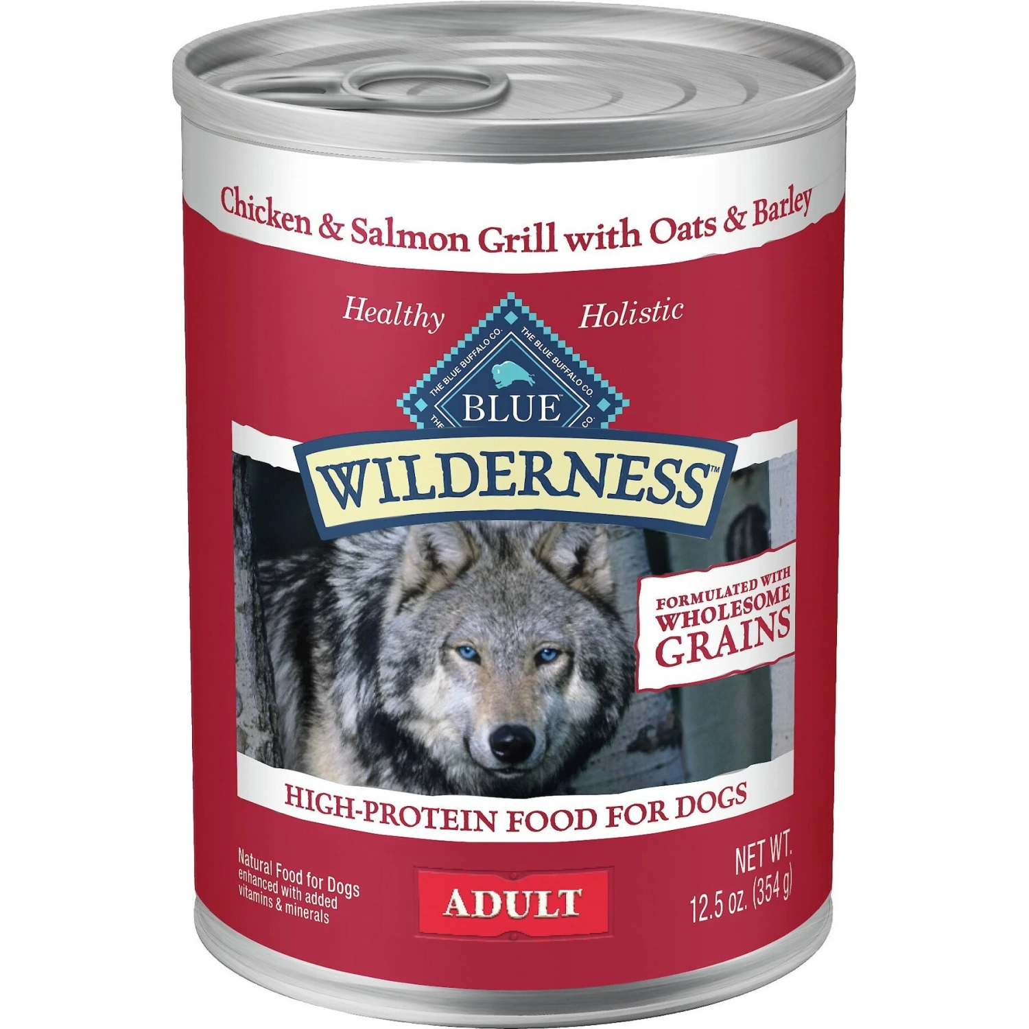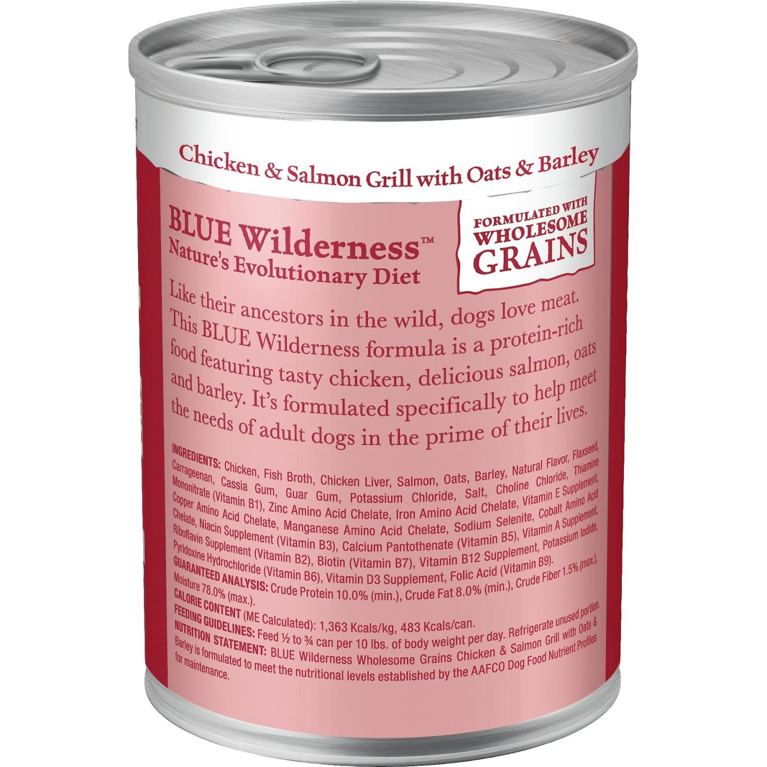 Your carnivorous sidekick will come running when there’s a delicious helping of Blue Buffalo Wilderness Salmon & Chicken Grill with Oats & Barley Adult Wet Dog Food in his dish. Featuring a savory mix of protein-rich salmon and chicken, this natural wet food satisfies your dog’s natural cravings for meat while supporting his energy needs with complex carbohydrates from wholesome grains. Plus, Blue Buffalo dog food is crafted without any by-product meals and fillers like corn, wheat and soy. Serve up this special food three different ways—as a tasty reward, to add fresh flavor to his dry food or as a complete meal. Your best pal is sure to know he’s been an extra-good boy at dinnertime!