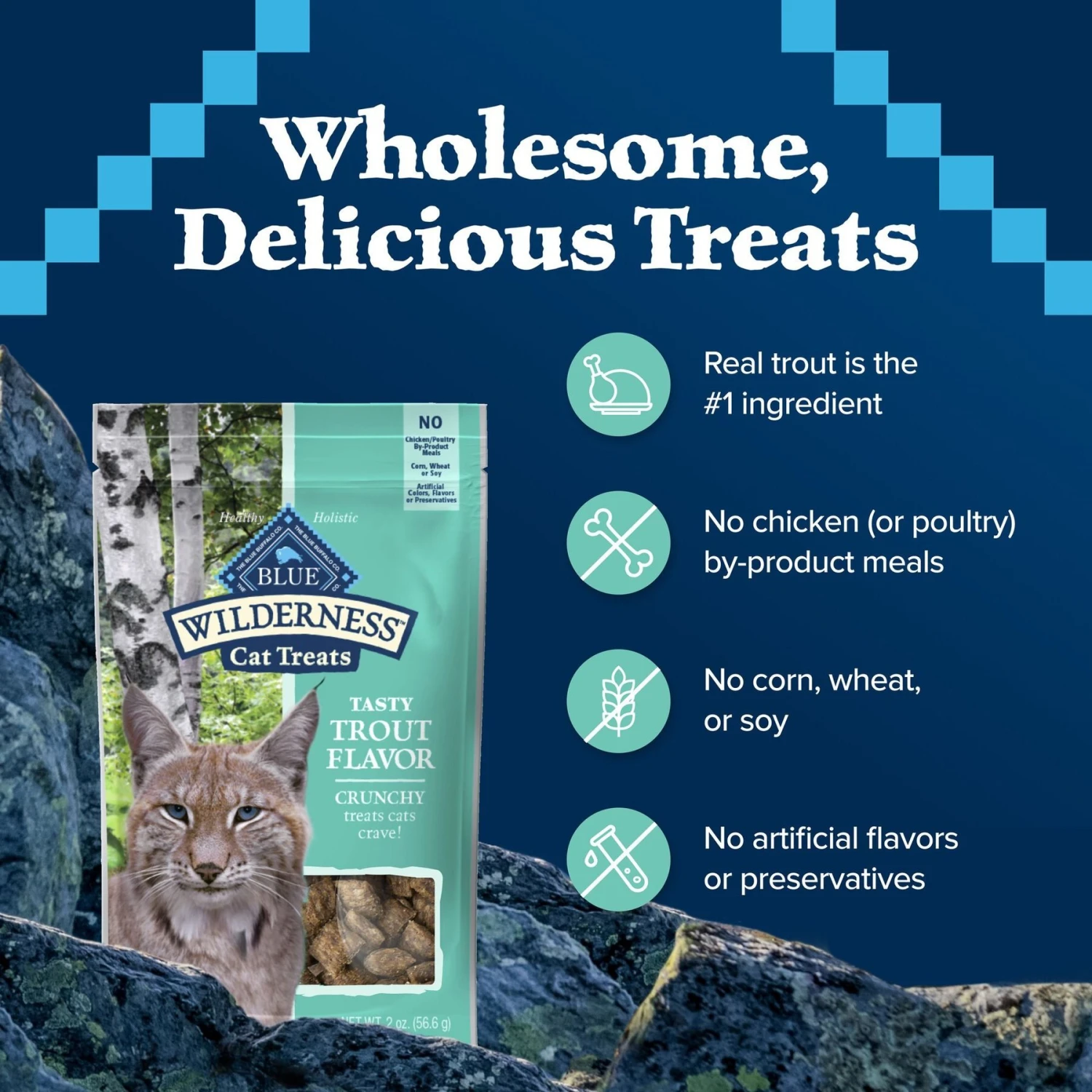 Take a walk on the deliciously wild side with the Blue Buffalo Wilderness Trout Formula Crunch Grain-Free Cat Treats. Inspired by the lynx, a carnivore who thrives on meat, these treats provide an irresistible flavor in a crunchy form that your cat will crave. They’re made with only the finest, natural ingredients like real, protein-rich trout—and equally important is what’s not in them. These holistic treats leave out all the stuff that isn’t good or nutritious for your cat, because that’s just how nature intended it. It’s the most purrfect way to reward your hungry cat.